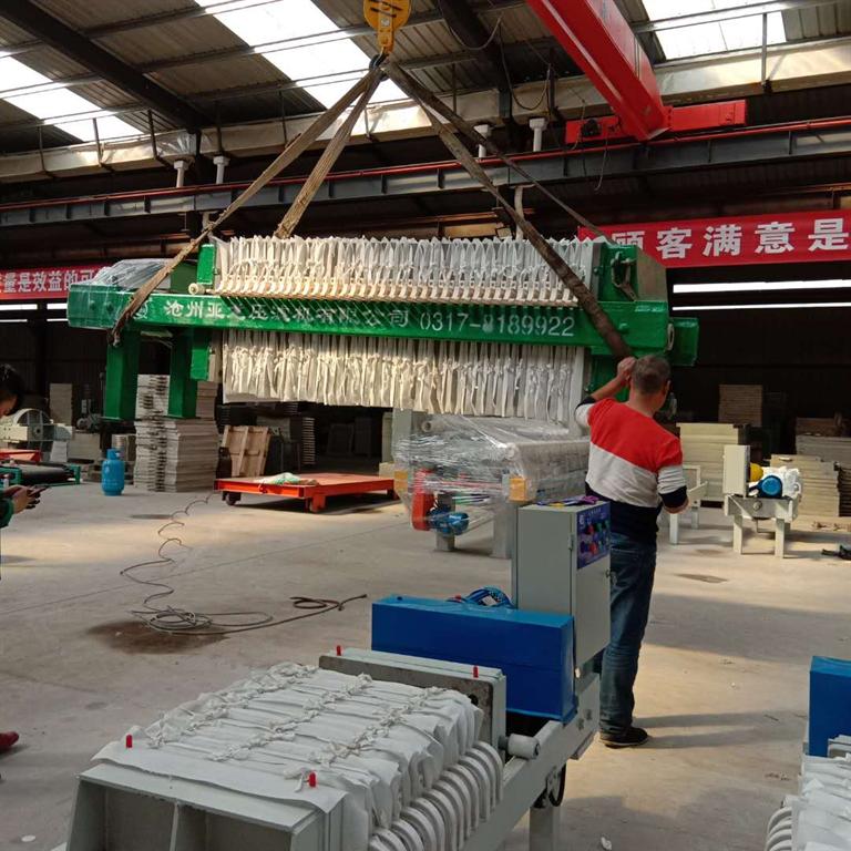 板框壓濾機(jī)對(duì)于濾渣壓縮性大或近于不可壓縮的懸浮液都能適用。適合的懸浮液的固體顆粒濃度一般為10%以下,操作壓力一般為0.3~1.6兆帕,特殊的可達(dá)3兆帕或_高。過(guò)濾面積可以隨所用的板框數(shù)目增減。板框通常為正方形,濾框的內(nèi)邊長(zhǎng)為 200~2000毫米,框厚為16~80毫米,過(guò)濾面積為1~1200㎡。板與框用手動(dòng)螺旋、電動(dòng)螺旋和液壓等方式壓緊。板和框用木材、鑄鐵、鑄鋼、不銹鋼、聚丙烯和橡膠等材料制造。
