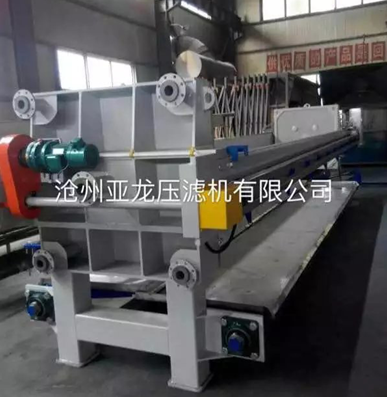 板框壓濾機操作周期, _是壓緊:過濾設(shè)備告訴您壓濾機在操作前須要進行整機檢查:查看濾布有無打折或重疊現(xiàn)象,電源是否已正常連接。檢查后即可進行壓緊操作,首先按一下“啟動”按鈕,油泵開始工作,然后再按一下“壓緊”按鈕,活塞推動壓緊板壓緊,當(dāng)壓緊力到達調(diào)定高點壓力后,液壓系統(tǒng)自動跳停。
